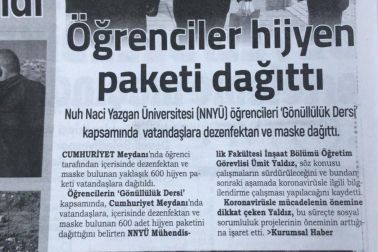 Nuh Naci Yazgan Üniversitesi Mühendislik Fakültesi İnşaat Mühendisliği Bölümü Öğrencileri Gönüllülük Dersi Kapsamında Üniversite Öğr. Gör. Ümit YALDIZ’ın Liderliğinde Kayseri Halkını Covid-19 Pandemisine karşı Bilinçlendirdi.