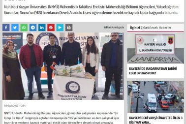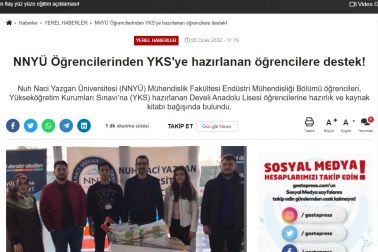 Nuh Naci Yazgan Üniversitesi (NNYÜ) Mühendislik Fakültesi Endüstri Mühendisliği Bölümü öğrencileri, Yükseköğretim Kurumları Sınavı’na (YKS) hazırlanan Develi Anadolu Lisesi öğrencilerine hazırlık ve kaynak kitabı bağışında bulundu.